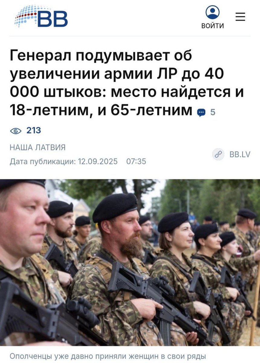В Латвии хотят увеличить общую численность войск до 40 тыс. человек за счёт резервистов в возрасте от 18 до 65 лет.