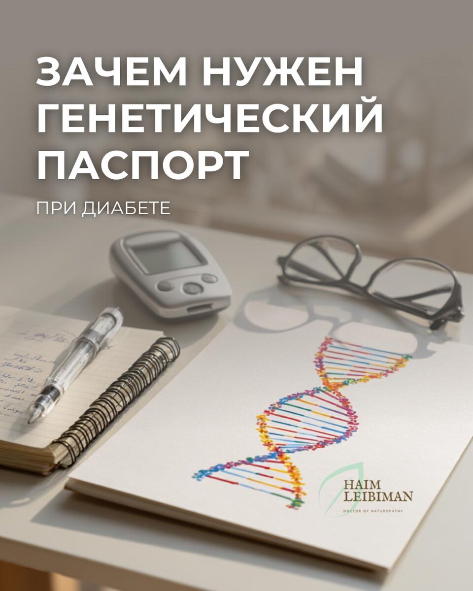 Сахарный диабет 1 типа официально считают неизлечимым заболеванием. Но «неизлечимый» не значит «безнадёжный». Современная медицина ищет новые пути, чтобы помочь организму использовать свои ресурсы максимально эффективно. Один из таких инструментов — Генетика. Все процессы в обмене веществ контролируются генами. У каждого они разные, и потому диабет у каждого человека тоже разный. То, что у одного вызывает осложнения быстро, у другого может протекать мягко и дольше без проблем. ⏺ понять, как именно работает углеводный и жировой обмен; ⏺ выявить риски осложнений (почки, глаза, сосуды, нервы) ещё до их появления; ⏺ определить непереносимости (например, глютен, лактоза), которые мешают усвоению витаминов и микроэлементов; ⏺ увидеть предрасположенность к дефициту витаминов и микроэлементов (цинк, хром, магний, витамин D и др.), без которых невозможен нормальный обмен; ⏺ оценить, как иммунная система реагирует на собственные клетки и что запускает аутоиммунный процесс. 💡 Главная идея про
