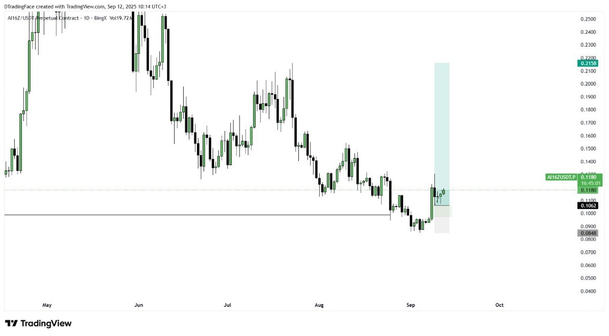 AI16Z -> Рассматриваю такую свинг позицию. Потенциал может быть 100%+ Стоп 20%. Выглядит хорошо. Закинул лимитку