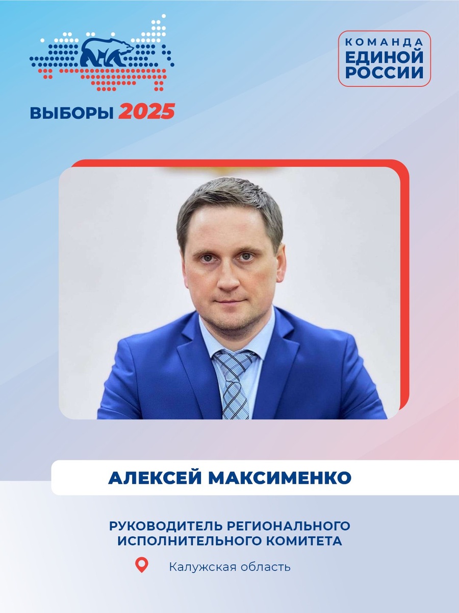 ✅Заместитель секретаря регионального отделения партии «Единая Россия», руководитель Регионального исполнительного комитета Калужского