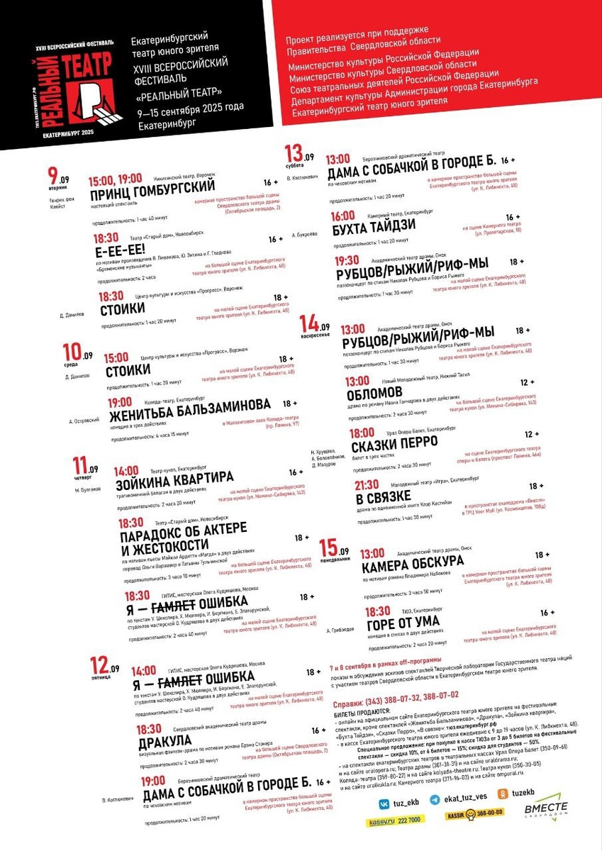 Омская драма на XVIII Всероссийском фестивале «Реальный театр» в Екатеринбурге! Друзья, 13 ,14 и 15 сентября Омский академический театр драмы покажет спектакли "РУБЦОВ/РЫЖИЙ/РИФ-МЫ" в постановке главного режиссера театра Георгия Цхвиравы и "Камера обскура" в постановке Алексея Крикливого на площадках Екатеринбургского Театра юного зрителя в рамках фестиваля "Реальный театр"! Давайте пожелаем актерам успешных показов, благодарных уральских зрителей и самых громких аплодисментов! #омскдрама_гастроли #омскдрама152