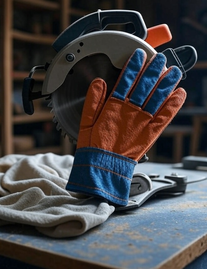 **Пример ситуации:** При работе на циркулярной пиле тканевая перчатка может зацепиться за диск, который вращается со скоростью несколько тысяч оборотов в минуту. Даже кратковременный контакт может привести к наматыванию перчатки и травме руки.
