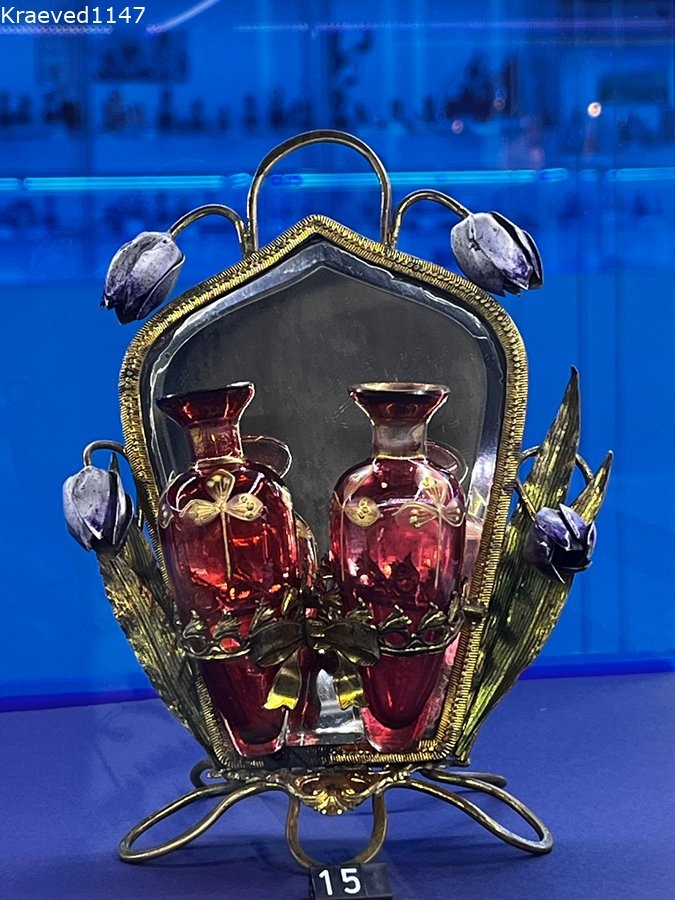 На многих выставках декоративного стекла мы встречали старинные флаконы для духов. Видели мы их в Государственном историческом музее, в художественном музее Пензы, там представляли работы стеклодувов Никольского музея стекла. Немного пузырьков хранится в собрании Ярославского художественного музея. Но то, что мы увидели на выставке из собрания Анны Мироненко. очаровало и восхитило. На выставке "Лалик. Красота вне времени" я впервые услышала слово "Лалик". Лалик - это имя и бренд. Рене Лалик - основатель ювелирной фирмы. В самом начале XX века партнёра Рене парфюмера Франсуа Коти озарила идея выпускать духи в оригинальных флаконах. Рене Лалик воплотил мысль, создавая изящные пузырьки для духов. Они стали настоящими произведениями искусства и предметом охоты для коллекционеров.