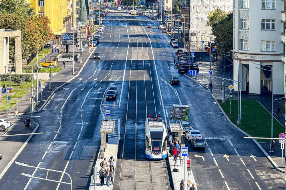 11 апреля 2022 года Сергей Семенович Собянин сказал: К концу 2023 - началу 2024 года в Москве впервые за 40 лет появится новая магистральная трамвайная линия… Она соединит крупнейший хаб на Площади трёх вокзалов с Бульварным кольцом. Участок 1,6 км создаст дополнительные "трамвайные диаметры" через весь город… Мэр человек слова, сказал, сделал, 10 сентября 2025 года участок был открыт. Темпы строительства наземной трамвайной линии БЕЗ контактной сети по существующему проспекту поражают - 1600 м / 1248 дней = 1 метр 28 сантиметров в день. Видимо, очень тяжелые условия привели к удвоению планируемого срока строительства, сдвинув его окончание вправо на 1 год 8 месяцев. Пока город ждет необходимое число трамваев, обладающих возможностью проезжать новый участок на автономном ходу, движение осуществляется по временной схеме под N 90 от станции метро «Сокольники» до Павелецкого вокзала, далее для оборота у «Пролетарской» без пассажиров. Локально непонятно отсутствие остановки у