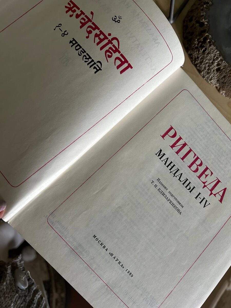 Доброе утро, здравствуйте! Перебирала с утра книги в своих книжных шкафах. Опять прибыла свежая партия новых заказов, и надо было их расставить по темам. Мне очень хочется продолжить начатую рубрику с видеообзорами из моей библиотеки. Там есть очень интересные книги. В наших экспедициях по разным городам России я покупаю книги узкоспециализированные в музеях, или в монастырях. Для чего мне они? А оказалось, в них есть очень ценные результаты исследований, которые полностью меняют картину мира. Я не люблю книги современные эзотерические. В них много искажений и галлюцинаций. Я люблю книги научные, когда ученый докопался до чего-то, рассказывает это, и уменя это складывается, как еще один камушек в огромное мозаичное полотно, хранящееся внутри меня уже много-много лет. И еще я люблю книги древние. Как этим делиться с читателями и слушателями? Я делюсь лишь на семинарах, в наших поездках, и тд. Поделюсь, какие книги были куплены в этот раз. Ригведа. Мандалы с I по IV. И