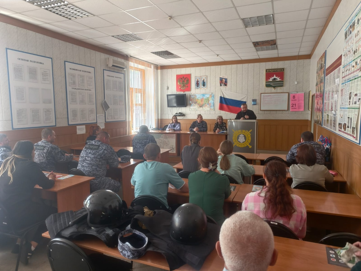 11 сентября 2025 года настоятель храма Казанской иконы Божией Матери пос. Усинский иерей Евгений Седин провел беседу с личным составом Росгвардии г. Междуреченска. Отец Евгений побеседовал с сотрудниками об отношении Церкви к терроризму и о духовной опасности экстремистских движений. После беседы священник благословил сотрудников Росгвардии на несение службы Встреча прошла в рамках мероприятий по противодействию терроризма и экстремизма в подразделении Росгвардии г. Междуреченска.