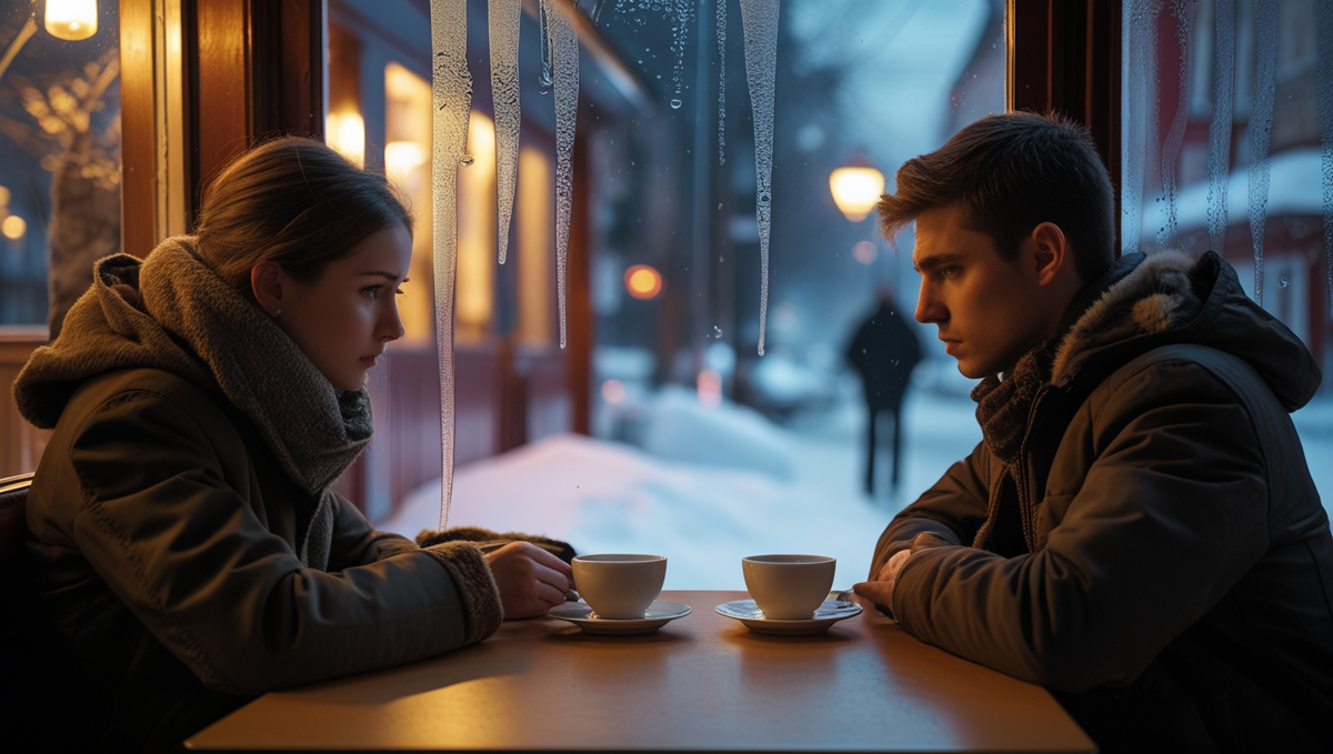 Он не кричал. Он заплатил по счёту, вышел первым. На улице снег лёг на ресницы и тут же растаял. Они шли молча до дома. Ключи от двери звякнули слишком громко. На кухне Алексей поставил чайник, потому что надо было что-то поставить. «Я не могу жить в таком», — сказал он. — «Если это конец — скажи». Мария присела на табурет, не снимая пальто. «Я не знаю, конец ли это. Я знаю, что так, как было, больше не будет».