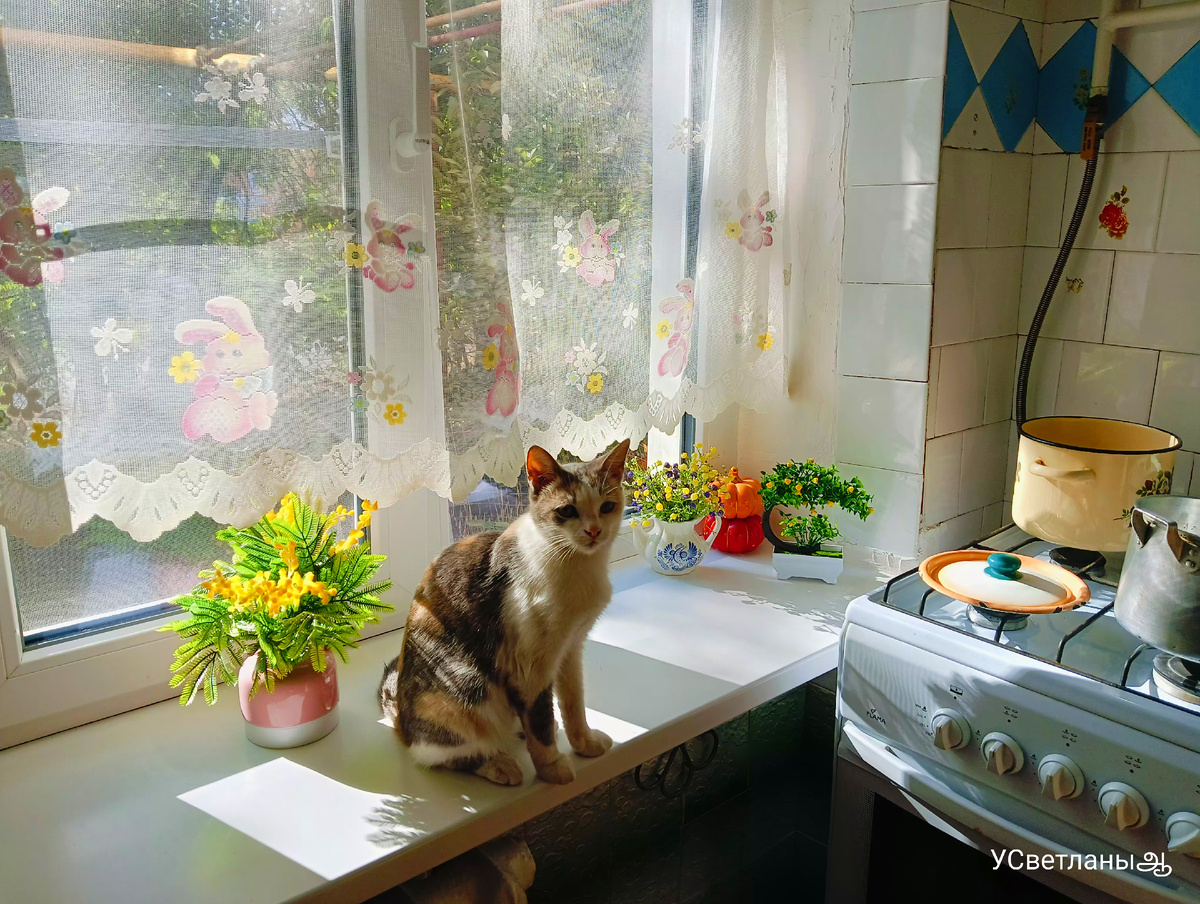 Знает же, что не разрешаю им садиться на подоконник на кухне. Знает, но сидит и смотрит дальше.