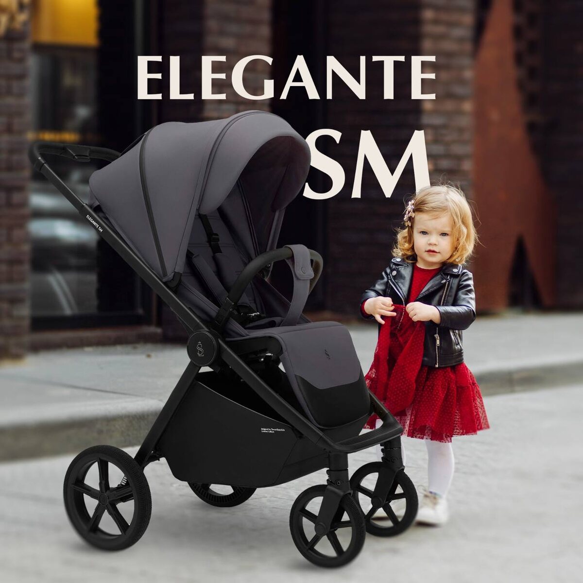 Прогулочная коляска Elegante SM — новая модификация легендарной модели. Она оснащена телескопической ручкой и глубоким капором с дополнительной секцией на молнии.
