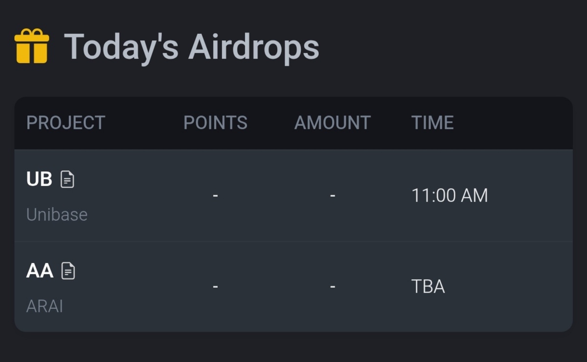 Будете сегодня забирать дроп? 👀 В 11:00 по Киеву можно будет забрать 4000 токенов $UB в формате FCFS. Для клейма нужно 200 Alpha Points. Ещё на Alpha Gate можно забрать такой же FCFS дроп на 4000 $UP в 11:00. Для участия нужно иметь от 156 понитов. Также в 13:00 можно будет забрать 800 токенов $AA в формате FCFS. Для клейма нужно 200 поинтов. Ближайшие дропы/сейлы: 14.09 Airdrop $STBL Если крутите альфу в Web3, можете забрать 10% скидку на торги. Переходим на сайт и вводим код – P4MSW9KD 👈 ✈ | Chat | Admin