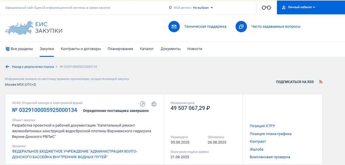 В столице Черноземья подведены итоги тендера на поиск подрядчика, который подготовит научную и рабочую документацию по капитальному ремонту водосброса плотины Воронежского водохранилища. Начальная максимальная цена контракта составляла 49,5 млн рублей. Победу на аукционе одержала самарская компания ООО «Еврогеопроект». Фирме достался контракт на 43,5 млн рублей. Об этом свидетельствуют документы на сайте госзакупок. На торги выходили еще две компании. Одна из них предложила выполнить работы по максимальной стоимости. Другая организация выставила сумму в 47 млн рублей. Теперь ООО «Еврогеопроект» должно будет подготовить проект капитального ремонта водосброса плотины шириной 207 метров и состоящего из трех частей. Работы надо выполнить до июня 2027 года. Надо сказать, что плотина создала Воронежское водохранилище в 70-х годах прошлого века. Официальная дата ее открытия – 29 июля 1972 года. В техническом отношении длина напорного фронта от плотины к водохранилищу — 1420 метров. Гидроузел