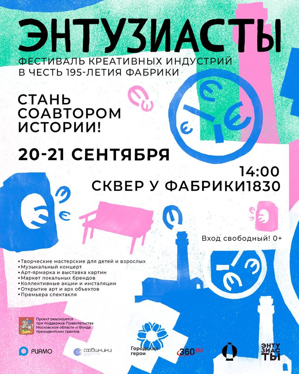 Фестиваль креативных индустрий «Энтузиасты», 20-21 сентября. Стань соавтором истории!