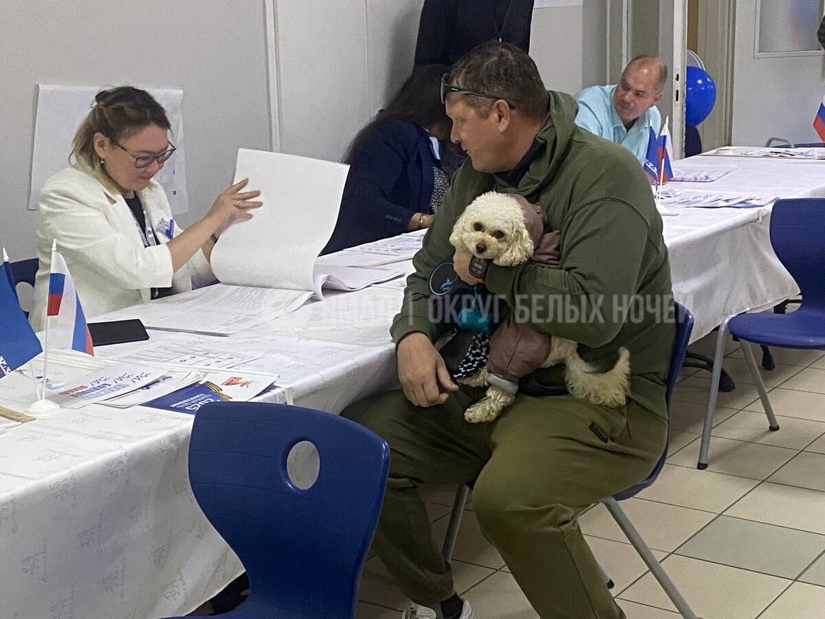 «Усы, лапы и хвост — вот мои документы!»: самого милого избирателя заметили на участке в Салехарде Мужчину сперва остановили на входе, но сотрудники комиссии не удержались, допустили и сфотографировали собаку. Подписаться | Прислать новость | Дать «буст»