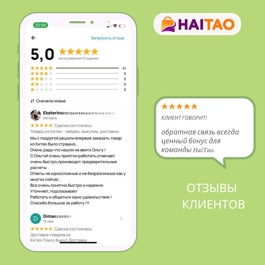 💬 Ценим каждый отзыв наших клиентов! Мы рады, что вам нравится наш сервис и работа менеджеров 🙌 Ваши отзывы помогают нам становиться лучше каждый день ❤️ #отзывHaiTao #haitao #сервис #клиентыоHaiTao