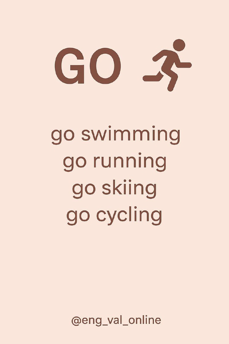 Π°ΠΊ β¨GO - Π΅ΡΠ»ΠΈ Π°ΠΊΡΠΈΠ²Π½ΠΎΡΡΡ, ΠΊΠΎΡΠΎΡΠΎΠΉ ΠΌΡ Π·Π°Π½ΠΈΠΌΠ°Π΅ΠΌΡΡ Π·Π°ΠΊΠ°Π½ΡΠΈΠ²Π°Π΅ΡΡΡ Π½Π° -ing go swimming, go sailing, go cycling β¨PLAY - ΠΈΡΠΏΠΎΠ»ΡΠ·ΡΠ΅ΠΌ Ρ ΠΈΠ³ΡΠ°ΠΌΠΈ, Π³Π΄Π΅ Π΅ΡΡΡ Π½Π°ΠΏΠ°ΡΠ½ΠΈΠΊ, ΠΏΡΠ°Π²ΠΈΠ»Π°, ΡΠ°ΡΡΠΎ Π΅ΡΡΡ ΠΌΡΡ, Π½ΠΎ Π² ΡΠ»ΡΡΠ°Π΅ Ρ ΡΠ°Ρ