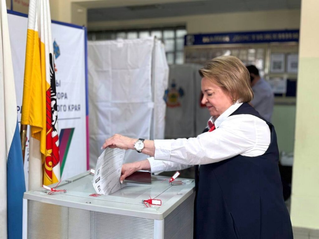 Председатель Общественной палаты Кубани и руководитель краевого штаба по наблюдению за выборами Любовь Попова проголосовала на своем участке и подчеркнула важность честности и прозрачности избирательного процесса.
