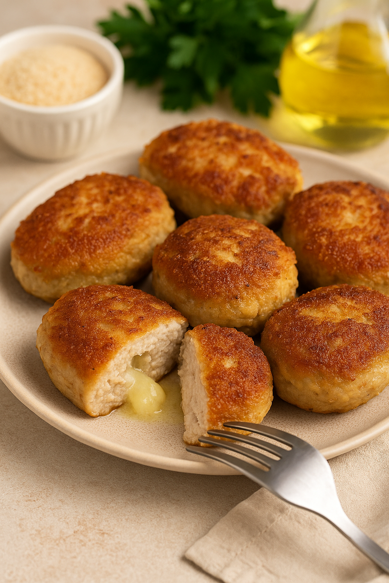 Куриные котлеты – одно из самых популярных домашних блюд. Они просты, вкусны и подходят на каждый день. Но часто хозяйки жалуются, что котлеты получаются суховатыми и теряют аппетитность. Я расскажу все тонкости, которые помогут сделать их по-настоящему сочными и нежными. Курица – универсальное мясо. Оно: Но куриное филе само по себе суховатое. Именно поэтому важно правильно подобрать ингредиенты и соблюдать технику приготовления. На 10 средних котлет я использую такой набор: Хлеб, замоченный в молоке, удерживает влагу в фарше. Котлеты не пересушиваются и остаются мягкими. Маленький кусочек масла, спрятанный в середине каждой котлеты, превращает блюдо в кулинарное чудо. При жарке масло тает и напитывает мясо соком. Филе лучше не перемалывать в пюре, а прокручивать через мясорубку или измельчитель крупными кусочками. Так котлеты будут воздушнее. Яйцо нужно для связывания фарша, но избыток делает котлеты «резиновыми». Одного достаточно. Сначала котлеты обжариваются до золотистой