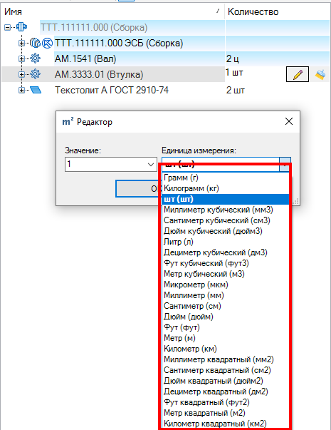 При работе с составом изделия у пользователей часто возникает вопрос: как ограничить количество единиц измерения, отображаемых у конструктора при создании состава.