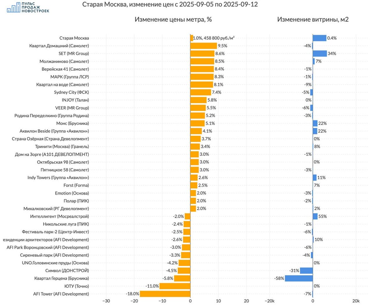 1️⃣ЖК "AFI Tower" (AFI Development) -18.0% в цене, витрина предложения уменьшилась на -234м2