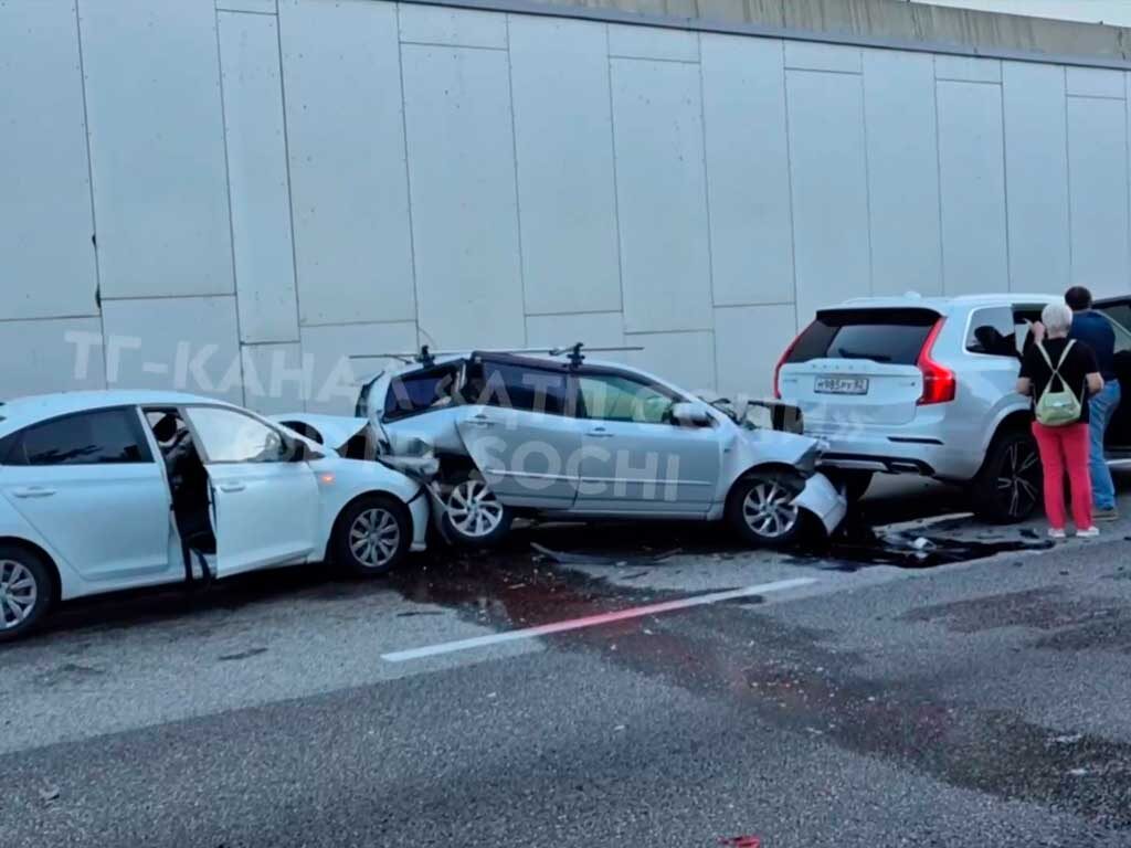 Сегодня рано утром на курорте жестко столкнулись несколько автомобиля. Всё произошло на трассе «Сочи – Адлер», перед съездом в Кудепсту, сообщает телеграм-канал «ДТП Сочи». Очевидцы запечатлели цепочку из трёх авто, стоящих у стенки. Виновником аварии, по всей видимости, стал «задний» автомобиль, который въехал в едущие впереди машины. Комментаторы предположили, что были проблемы с соблюдением дистанции, хотя сам момент столкновения на кадры не попал. При этом, больше всех пострадал «средний» автомобиль, который сильно помяло с обеих сторон. О пострадавших неизвестно. Движения на участке затруднено. Фото: ДТП Сочи / t.me/dtp_sochi
