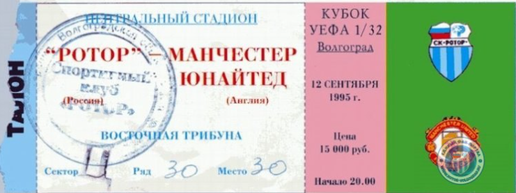 Поскольку «Ротор» в 1995 году занял четвертое место в чемпионате России, он получил право сыграть в престижном европейском турнире. На 12 сентября был назначен матч сине-голубых и английского «Манчестера Юнайтед». Зарубежные спортсмены прибыли в город-герой заблаговременно — 10 числа.