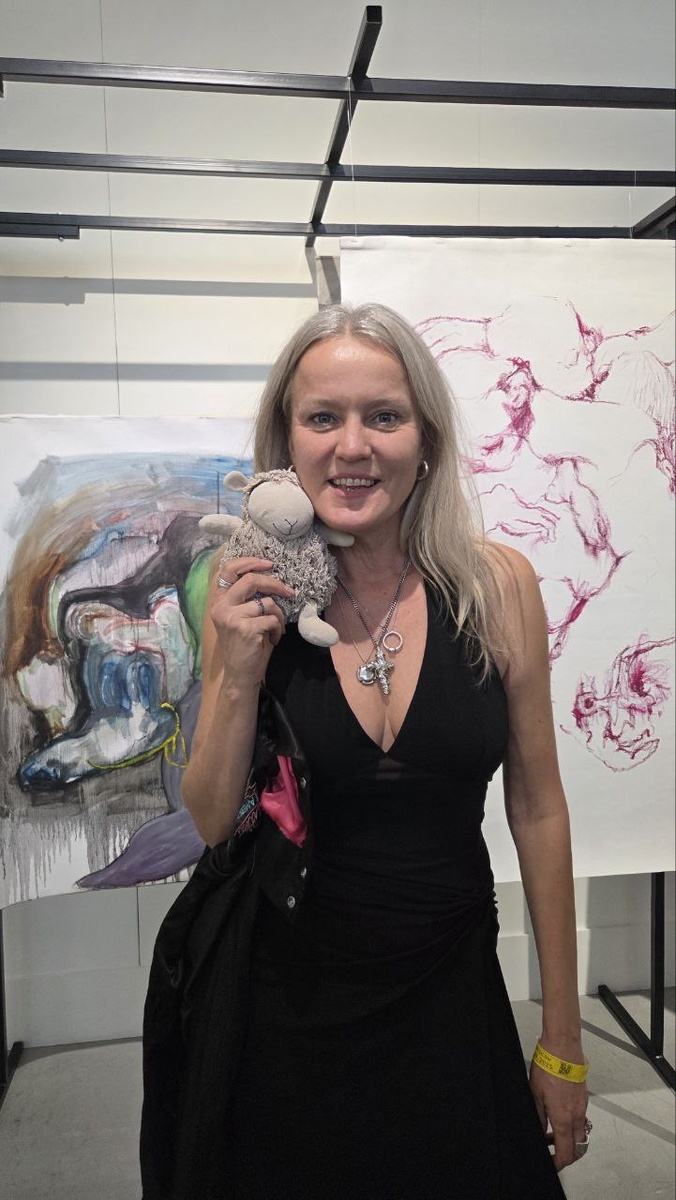 Зашли на стенды любимых галерей и художников. Сфотографировались с давней подругой Ириной Петраковой и ее новыми картинами, выпили бокальчик с EPIC Jewellery и посмотрели на арт-кольца из нового коллаба с художником Женей Мироновым, ну и галерея RuArts впервые представила классные деревянные скульптуры Виталия Тюрлика, чем-то напоминающие антикварного Петрушку. Конечно, среди всего этого разнообразия было много и 💩, но реально были вещи за которые цеплялся взгляд. А главное, есть действительно очень хорошего уровня произведения, пока ещё бюджетные, которые можно себе легко позволить. В прошлом году мы открыли для себя узбекских художников из Нукуса, в этом году наш с Овцой Борисом фаворит из Бурятии Амгалан Ринчинэ и его маски и скульптуры, навеянные бурятской мифологией 👹👹👹 Ярмарка CosMoscow идет с 12 по 14 сентября, стандартный билет 2100 руб. Большинство работ уже продано, так что собирайте контакты галерей и художников, если вам действительно что-то приглянулось. Хороших ва