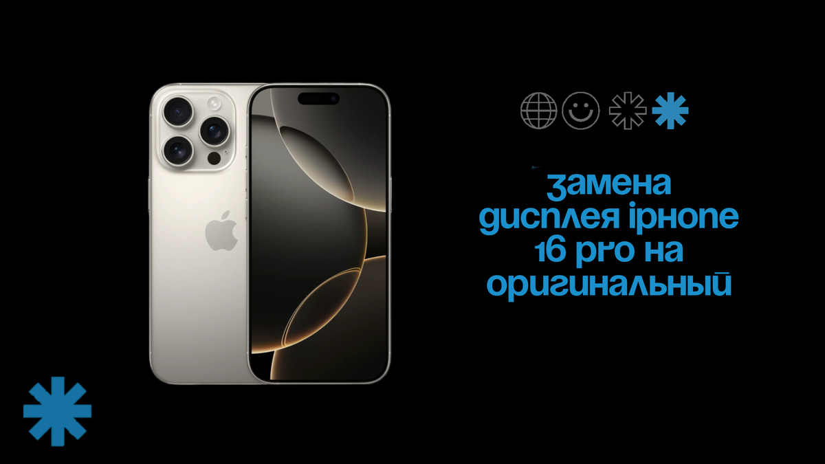 Экран iPhone 16 Pro - одна из самых дорогих и важных деталей смартфона. Он отвечает за изображение, плавность анимации и корректную работу сенсора. Но при падении, ударе или попадании влаги экран может перестать работать. Если у вас разбился экран iPhone 16 Pro, появились полосы, пятна, сенсор не реагирует или дисплей полностью погас - нужна замена. В GadgetFix мы выполняем замену дисплея iPhone 16 Pro на оригинальные экраны, абсолютно такие же, какие устанавливаются в авторизованных сервисных центрах Apple по всему миру. Новый экран активируется через Ассистент ремонта (Repair Assistant), и iPhone подтверждает его подлинность. На все работы и комплектующие мы даем официальную гарантию 1 год. Симптомы неисправного экрана iPhone 16 Pro Если вы заметили один из этих симптомов - ремонт экрана iPhone 16 Pro откладывать нельзя, так как проблема может усугубиться Как проходит замена дисплея iPhone 16 Pro в GadgetFix Гарантия и безопасность Мы даем 1 год гарантии на оригинальный диспле