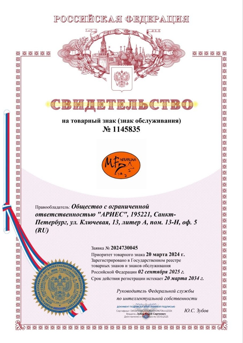 Ну вот и готово - товарный знак MF HERABUNA зарегистрирован