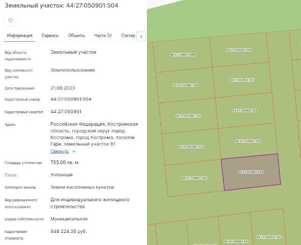 Название: Продажа земельного участка с кадастровым номером 44:27:050901:504, расположенного по адресу: город Кострома, поселок Гари