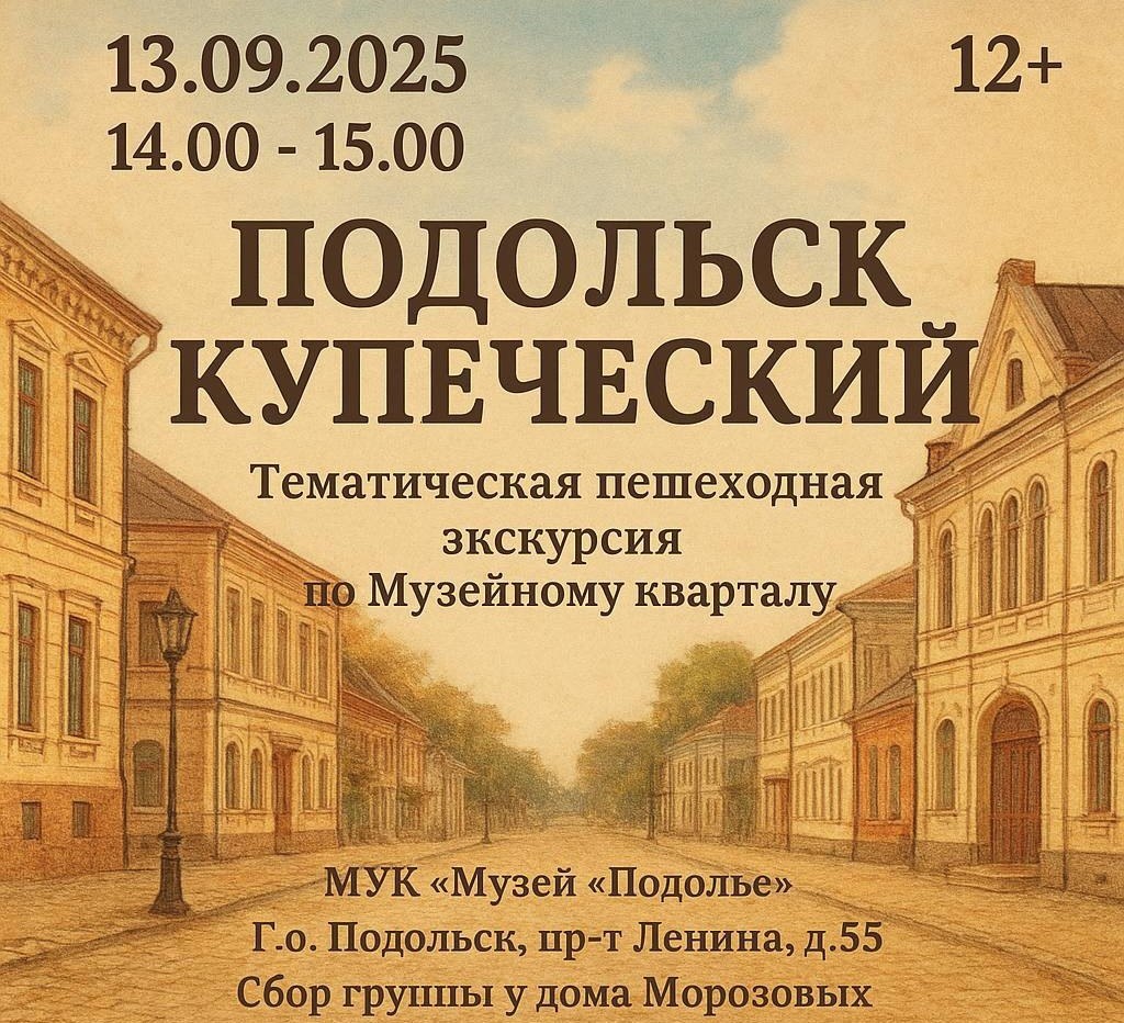 ✨ Пешеходная экскурсия «Подольск купеческий» ✨ Продолжительность - 1 час 🏛️Вы узнаете истории купеческого Подольска, услышите интересные факты о Музейном квартале и почувствуете атмосферу города конца XIX – начала XX века. 📞 Стоимость и количество мест уточняйте по телефону: 8-4967-69-92-39 🚫 Возраст: 12+ 📆 13.09.2025 🕒 14:00 🏢 Музей-заповедник «Подолье» - Дом Морозовых 📍 г. Подольск, пр-т Ленина, д.55 ⭐Поддержать канал голосом 💰 Вакансия - курьер в Подольске ✅ Мероприятия Подольск https://dzen.ru/id/66ed500f7b5671493eca3fd6 http://vk.com/podolsk_events http://dzen.ru/podolsk_events