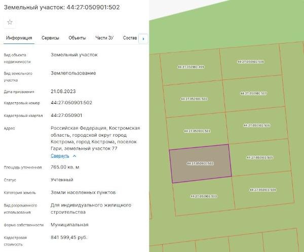 Название: Продажа земельного участка с кадастровым номером 44:27:050901:502, расположенного по адресу: город Кострома, поселок Гари
