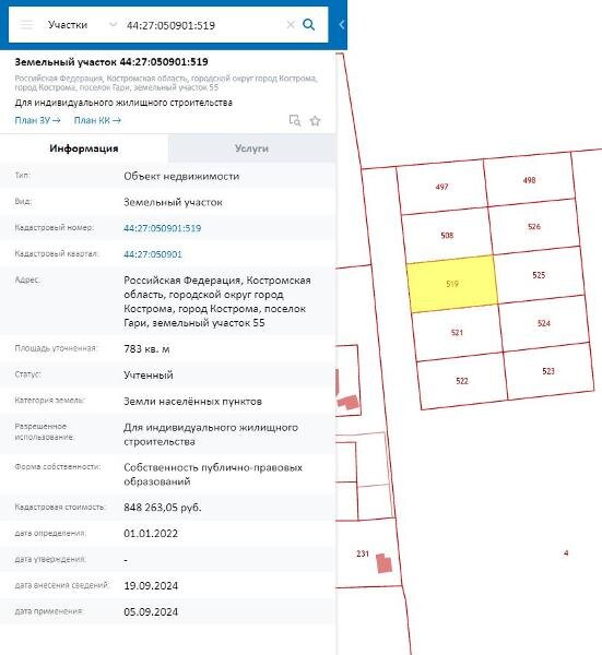 Название: Продажа земельного участка с кадастровым номером 44:27:050901:519, расположенного по адресу: город Кострома, поселок Гари