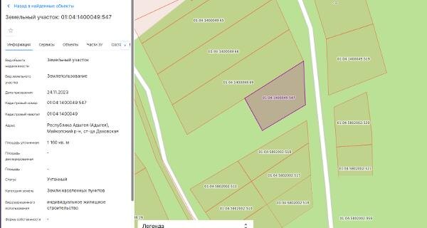 Название: Земельный участок с кадастровым номером 01:04:1400049:547, площадью 1160 кв
