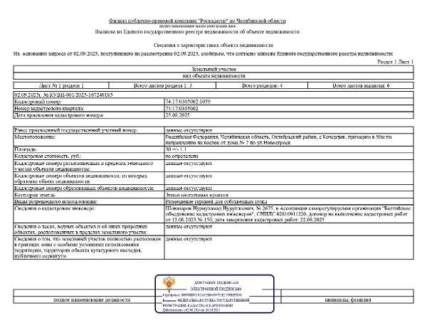 Название: земельный участок из земель населённых пунктов Кочердыкского сельского поселения с кадастровым номером 74:17:0305002:1059