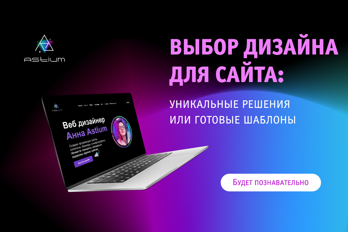 Когда речь идет о создании сайта, перед вами встает важный вопрос: выбрать уникальный дизайн или воспользоваться готовым шаблоном? Если вы думаете, что я сейчас буду рассуждать на тему, почему уникальный дизайн - хорошо, а шаблонный - плохо, вы ошибаетесь, и тот и другой вариант имеют место быть. Но давайте разберемся в плюсах и минусах каждого варианта. Создание сайта «с нуля» позволяет полностью контролировать процесс и получить уникальное решение, идеально подходящее вашему бизнесу. Вот несколько преимуществ этого подхода: Однако у уникального дизайна есть и свои недостатки: Готовый шаблон - это быстрый и экономный способ создания сайта. Вот его ключевые преимущества: Но и тут есть свои подводные камни: Какой путь выберете вы? Делитесь в комментариях! В моем канале много интересного, подписывайтесь - https://t.me/astium_design Также есть мой личный блог на сайте, там тоже много интересных статей - https://astium-design.ru/blog