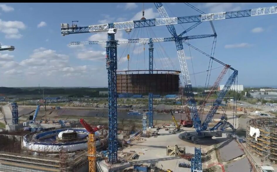 Специалисты завершили монтаж первого яруса внутренней защитной оболочки здания реактора на стройплощадке третьего энергоблока Ленинградской АЭС-2. На кадрах, снятых в четверг, строительный кран поднимает инженерную конструкцию. Начальник управления капитального строительства ЛАЭС-2 Евгений Милушкин сообщил, что первый ярус внутренней защитной оболочки гермооблицовки здания реактора уже удалось установить на штатное место. «Операция технически сложная, трудоемкая, заняла длительный процесс времени. Тяжелая конструкция получилась, собиралась она укрупнительной сборкой на стапеле, [весит] 227 тонн вместе с поддерживающими конструкциями. Монтировалась с помощью тяжелого гусеничного крана», — добавил мужчина. Сотрудник госкорпорации также рассказал о дальнейших этапах работы над третьим энергоблоком. «Следующим этапом 18 октября на этом же стапеле будет начата укрупнительная сборка второго яруса внутренней защитной оболочки. <…> До конца года у нас остается одна операция, также технологичес