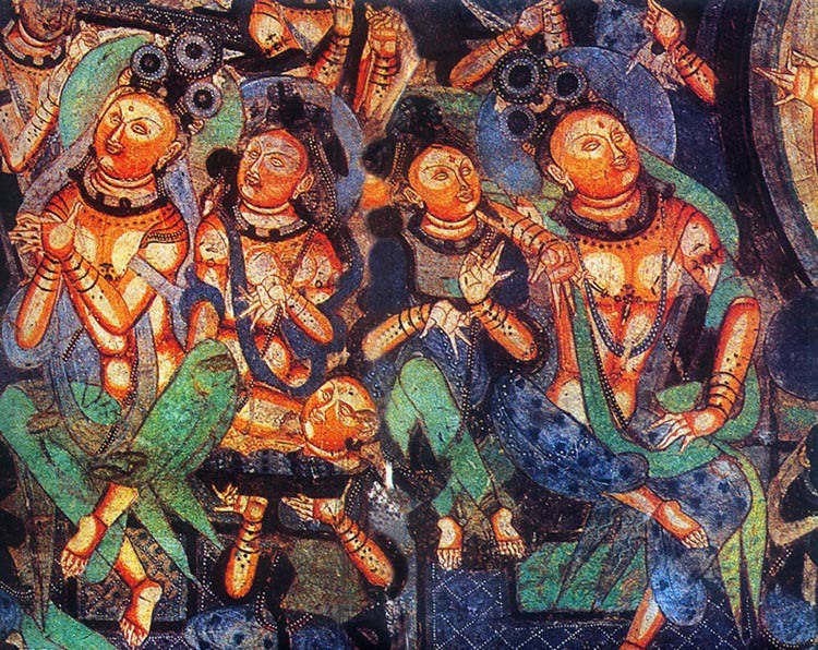 Сюаньцзан, китайский буддийский монах, учёный, философ, путешественник и переводчик писал: "Прекрасные дамы и благодетельницы Кызыла и Кумтуры в своих корсажах с обтягивающей талией и пышных юбках напоминают - несмотря на буддийскую тематику, — что на всех остановках вдоль Шелкового пути, во всех богатых караванных городах Тарима Куча была известна как город удовольствий, и что до самого Китая мужчины говорили о его музыкантах, танцовщицах и куртизанках".