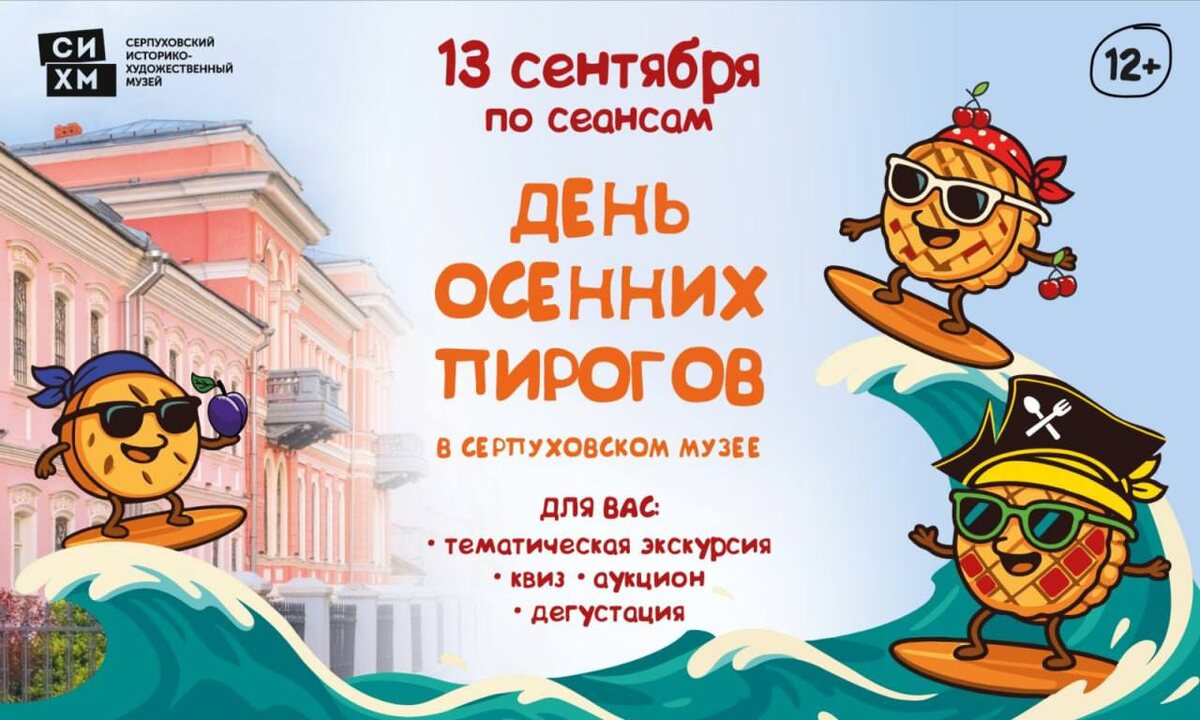 ✨ День осенних пирогов в музее 🥧 👉В 12:00, 14:30 и 17:00 🔸 Тематическая экскурсия 🔸 Интеллектуальный квиз – проверим эрудицию 🔸 Дегустация – пироги, чай А главное – вкусный аукцион, где можно выиграть свежую выпечку 🥧 🚫 Возраст: 12+ 📆 13.09.2025 🏢 Серпуховский историко-художественный музей 📍 Московская обл., г. Серпухов, ул. Чехова, д. 87 💰 Цена от: 850 до 1200 ₽ 🎫 Купить билет: https://clck.ru/3NkJfJ ⭐Поддержать канал голосом 💰 Вакансия - курьер в Серпухове ✅ Мероприятия Серпухов https://dzen.ru/id/66f01c6eb4c6fe60c9ca1608 http://vk.com/serpukhov_events http://dzen.ru/serpukhov_events
