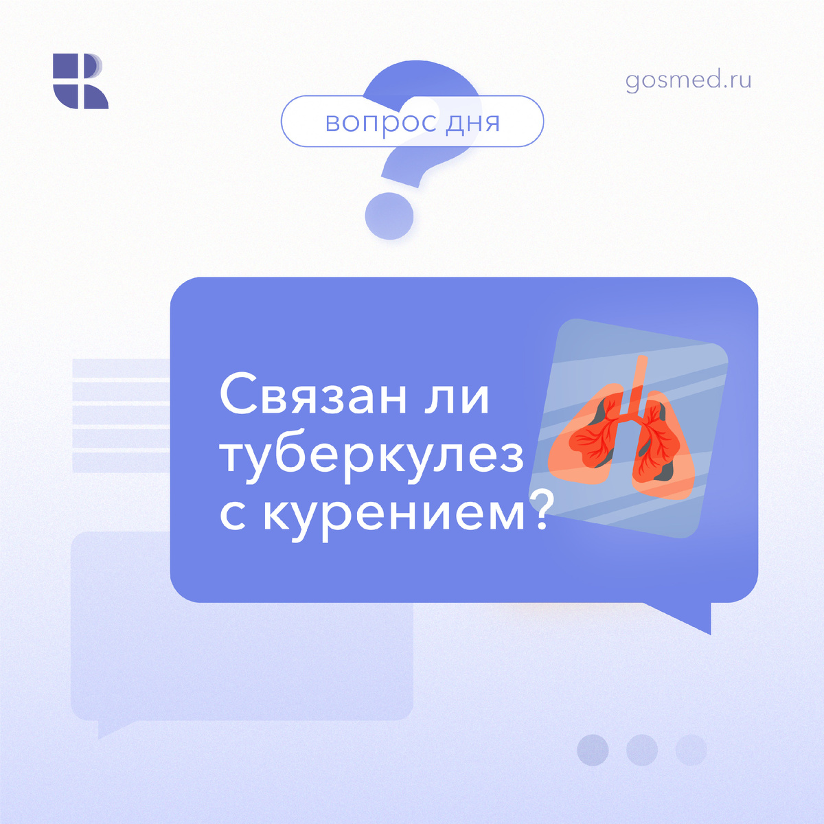 Отвечают врачи-пульмонологи Клиники СПбГУ: Непосредственной причиной туберкулеза является микобактерия туберкулеза. Однако опосредованно курение может повышать риск заражения туберкулезом и усугублять течение заболевания. Это происходит потому, что как активное, так и пассивное курение изменяет иммунный ответ организма на инфекции и постепенно повреждает структуру легочной ткани. Независимо от курения - крайне важно задуматься о своем здоровье и принять меры для профилактики туберкулеза. Берегите себя и будьте здоровы! Задавайте свои вопросы в комментариях, а мы ответим на них в следующий раз! #спроси_gosmed