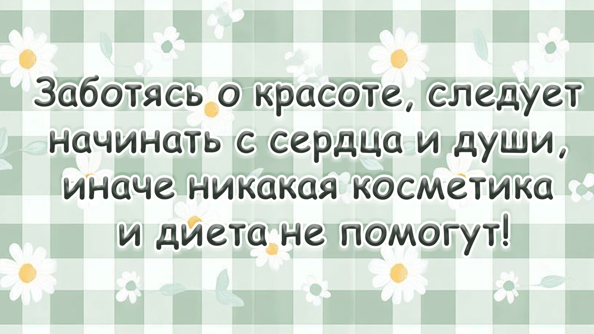 С субботой вас, мои дорогие читатели! Как же здорово, что этот день наконец-то наступил. Это время, когда можно забыть о будничной суете, позволить себе расслабиться или, наоборот, с головой окунуться в то, что давно хотелось сделать. В любом случае, пусть ваша суббота будет наполнена только приятными моментами, удачей и хорошим настроением. Отличного вам отдыха и самых добрых пожеланий! Мне очень нравится эта мысль! Она напоминает нам, что забота о себе – это не только про внешность. Если мы не работаем над своим внутренним миром, не развиваем доброту, не находим душевное равновесие, то никакие внешние ухищрения не смогут скрыть эту пустоту. Наоборот, ухоженная внешность в сочетании с добрым сердцем и светлой душой – вот это настоящая, сияющая красота. Как будто мы изо всех сил пытаемся удержать то, что естественным образом меняется со временем. Есть в этом что-то немного натянутое, не совсем органичное, но, с другой стороны, вполне понятное желание выглядеть лучше и моложе. Женская и