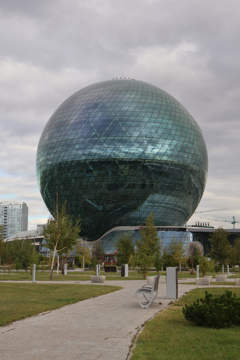 Гигантская стеклянная сфера диаметром 80 метров и высотой 100 метров была построена к выставке EXPO-2017. Сегодня она стала главным напоминанием о том, что Казахстан смотрит вперёд — к новым технологиям, чистой энергии и человеческому развитию.