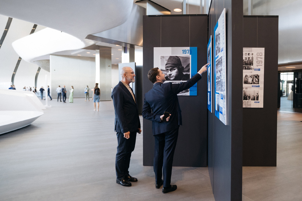 В Санкт-Петербурге к юбилею газовой столицы в Арке Лахта Центра открылась выставка «Место рождения города», созданная на основе материалов, предоставленных корпоративным музеем истории ООО «Газпром добыча Уренгой», и Департаментом культуры Ямало-Ненецкого автономного округа. Летопись освоения Севера особенно интересно увидеть ленинградцам, которые сами участвовали в строительстве города на границе с полярным кругом, ездили на Ямал в составе комсомольских отрядов, работали вахтовиками на месторождении и строили газовые магистрали. На архивных фотоснимках они, возможно, обнаружат своих друзей и себя.