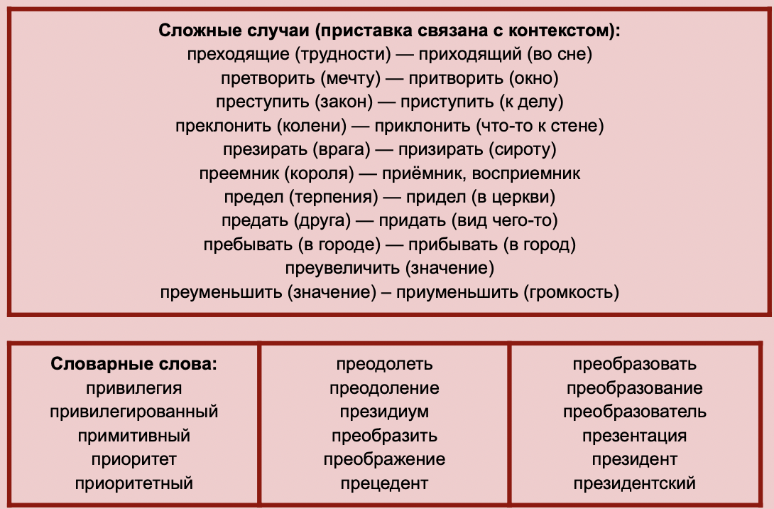 = «очень» (премудрая, премилый, прехорошенькая, пресильный, преувеличивать)