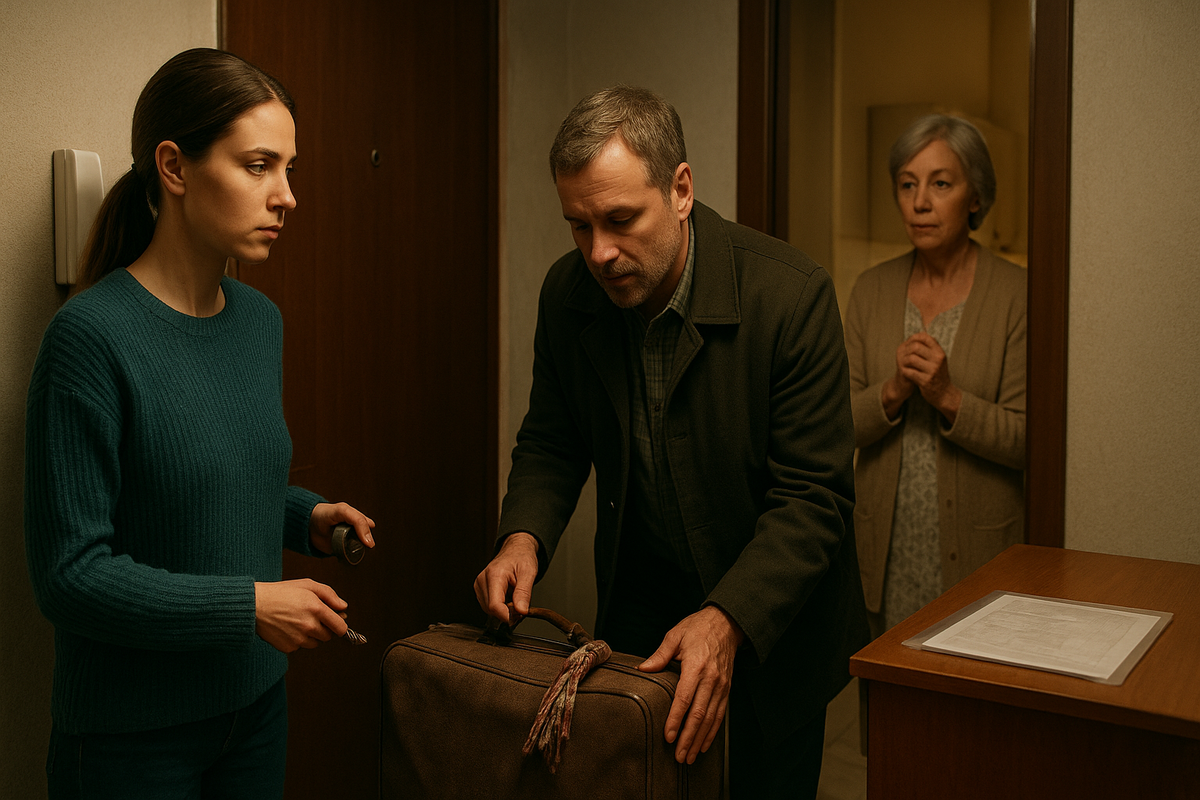 Она вздрогнула от «родная», но нажала кнопку. На площадке её уже ждал высокий мужчина в потёртом пальто, с треногой старой сумкой и чемоданом в плотной тканевой обивке. Пахло табаком, влажной шерстью и чем-то аптечным.