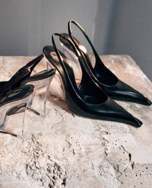 Новинка сезона - прозрачные каблуки 👠 Такие модели были представлены у бренда YSL Прозрачная танкетка придает невесомость, туфли как будто парящие над землей 🫣 Как вам? Где взять: Wysh, LIME