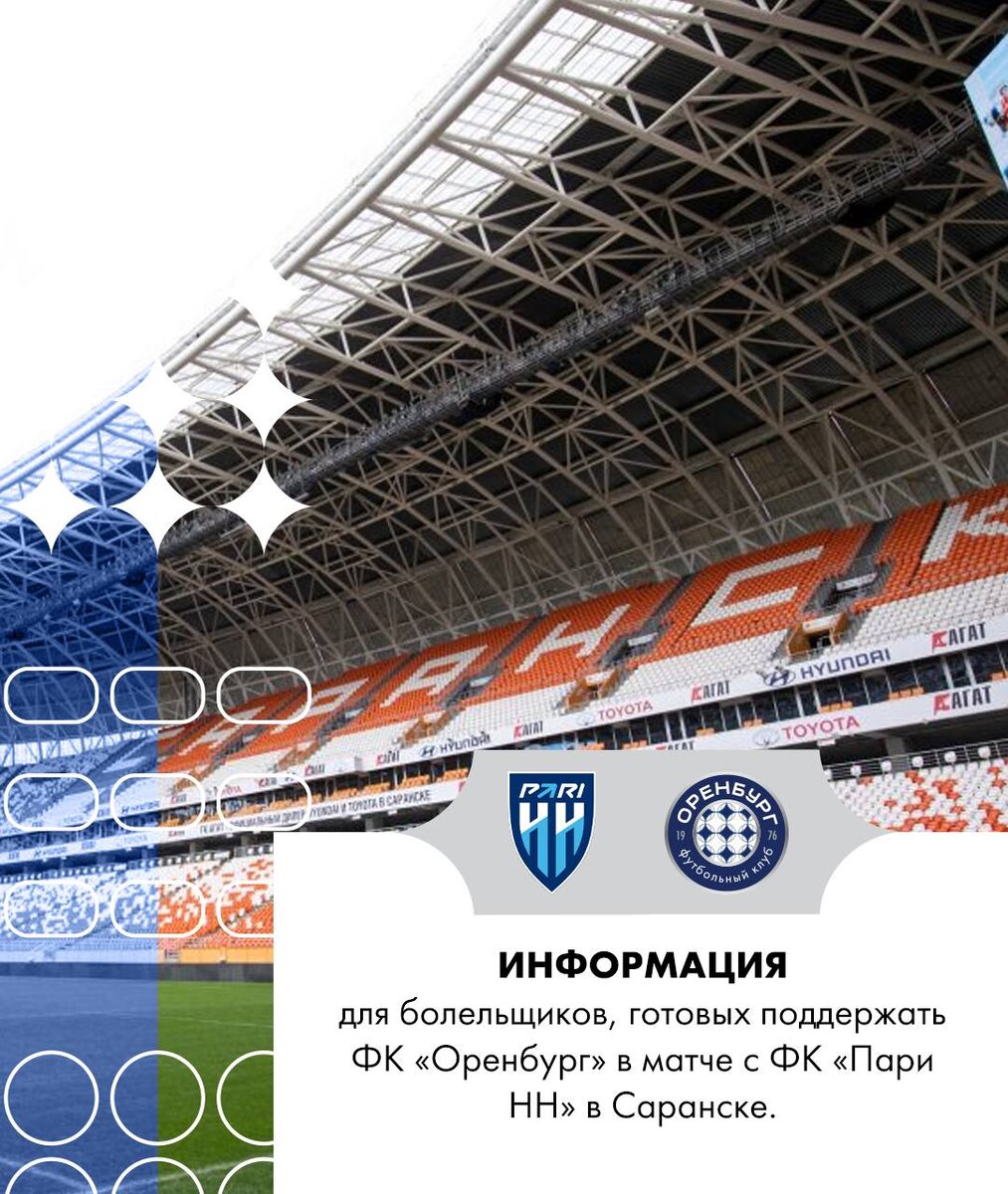Информация для болельщиков ФК «Оренбург», желающих посетить матч против «Пари НН» в Саранске