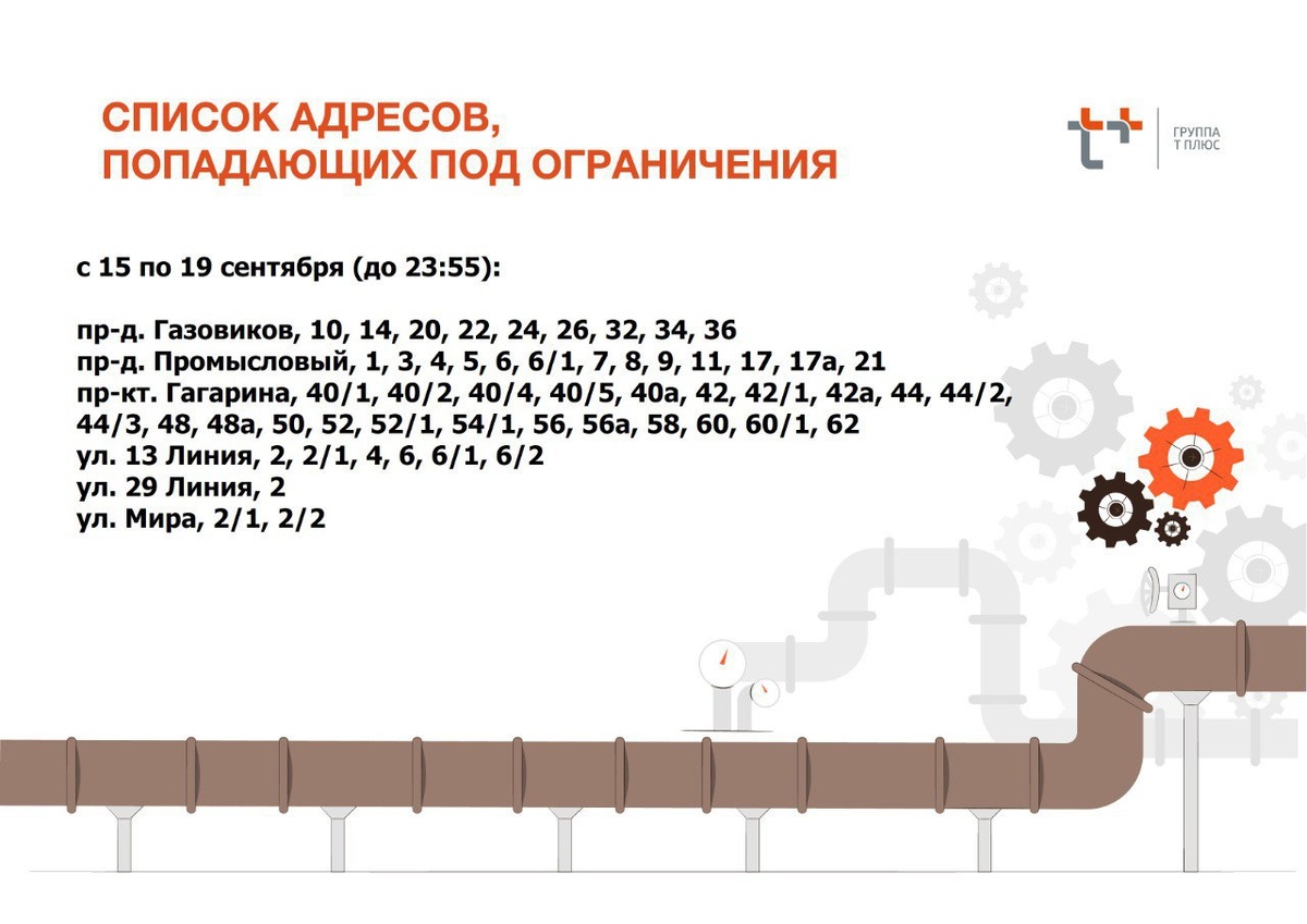 ❗️В Оренбурге горячую воду отключат с 15 по 19 сентября по следующим адресам
