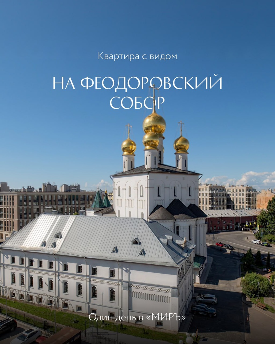 Квартира в «МИРЪ», где жизнь складывается в галерею особенных мгновений Уже с порога дом встречает особой атмосферой: белоснежное лобби с арт-объектами, изящные арки и витражное остекление — каждая деталь позволяет погрузиться в тихую и утончённую роскошь. Поднимаясь, чувствуешь камерность — всего три квартиры на этаже, тишина становится естественной частью жизни. За дверью привычные мелочи собираются в единое целое: утренний кофе с видом на купола Феодоровского собора, днём — работа или чтение в просторной гостиной, вечером — ужин с семьёй и тишина исторического центра за окнами. В карточках мы показали, как проходит день в трёхкомнатной квартире «МИРЪ». В сентябре её можно приобрести по особенной цене. Рассмотрите лот во всех деталях — от планировки до вида из окна — на нашем сайте.