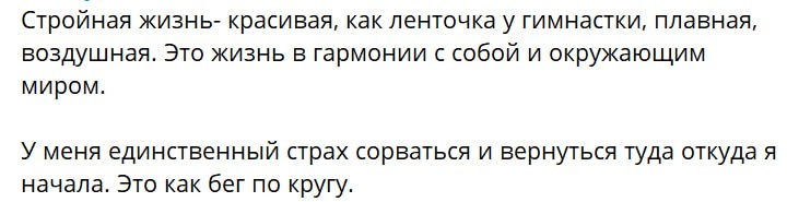 Сегодня в Клубе у нас было лирическое настроение 🤍 Вчера я писала во ВКонтакте про стройную жизнь Сейчас я чувствую себя по-настоящему свободной и уверенной. Привлекательной и желанной. И знаете… иногда мне даже хочется сказать той девочке «из прошлого»: «Ты не виновата, что боялась. Просто тебе никто не показал другой путь» Стройность - само слово сладкое на вкус! Стройность, это не просто "похудеть" - это ЖИЗНЬ без... тут я могу до утра перечислять! продолжение тут и сегодня мы продолжили эту тему. Что такое стройность? Казалось бы — всего лишь сброшенные килограммы. Но на самом деле за этим словом стоит целый мир. 🐚 Мир страхов. 🐚 Мир ограничений и убеждений, которые мы сами на себя накладываем. 🐚 Мир сомнений, что получится. Кто-то боится, что вес вернётся назад Кто-то — что не справится и сорвётся Кто-то — что будет вечно голодный А кто-то — что стройность всегда = диета, а значит, невкусно и скучно И, конечно, у многих этот страх замкнутого круга: то вверх, то вниз, ве