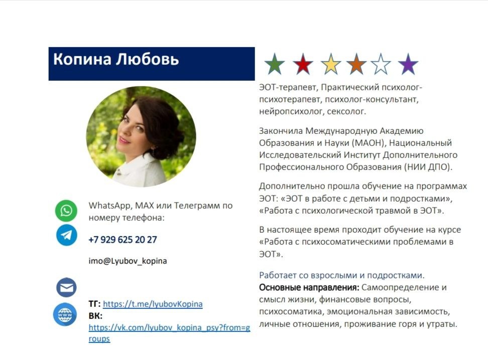 В этом году обновляли список рекомендованных личных терапевтов ЭОТ от института Эмоционально-образной терапии Н